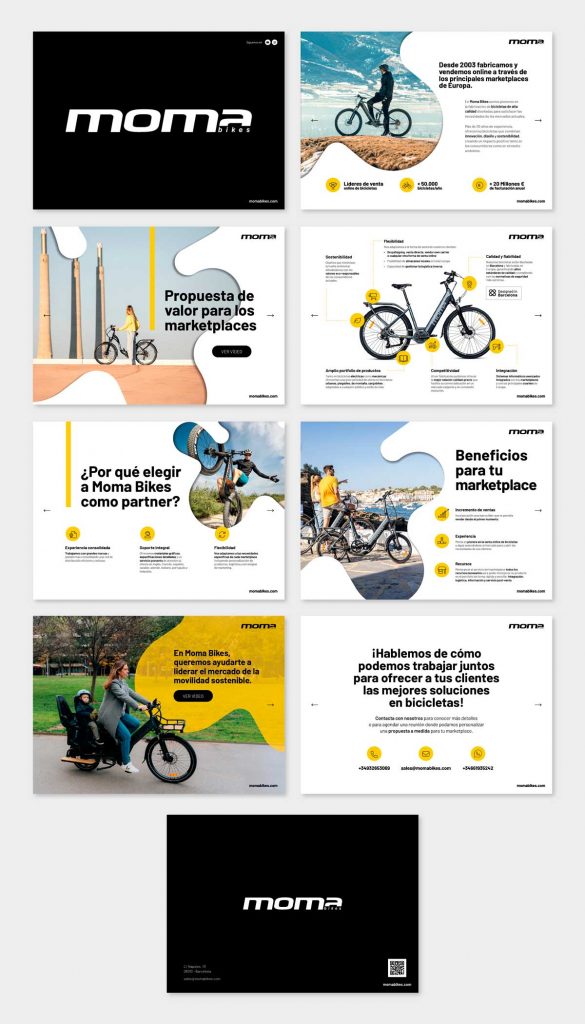 El repte era transmetre de forma clara, visual i impactant el valor diferencial de Momabikes a potencials partners de marketplaces, destacant el seu lideratge al sector, el seu catàleg de productes i els seus avantatges competitius. La peça havia de ser atractiva, intuïtiva i adaptada a un format digital interactiu per facilitar-ne la distribució i consulta.