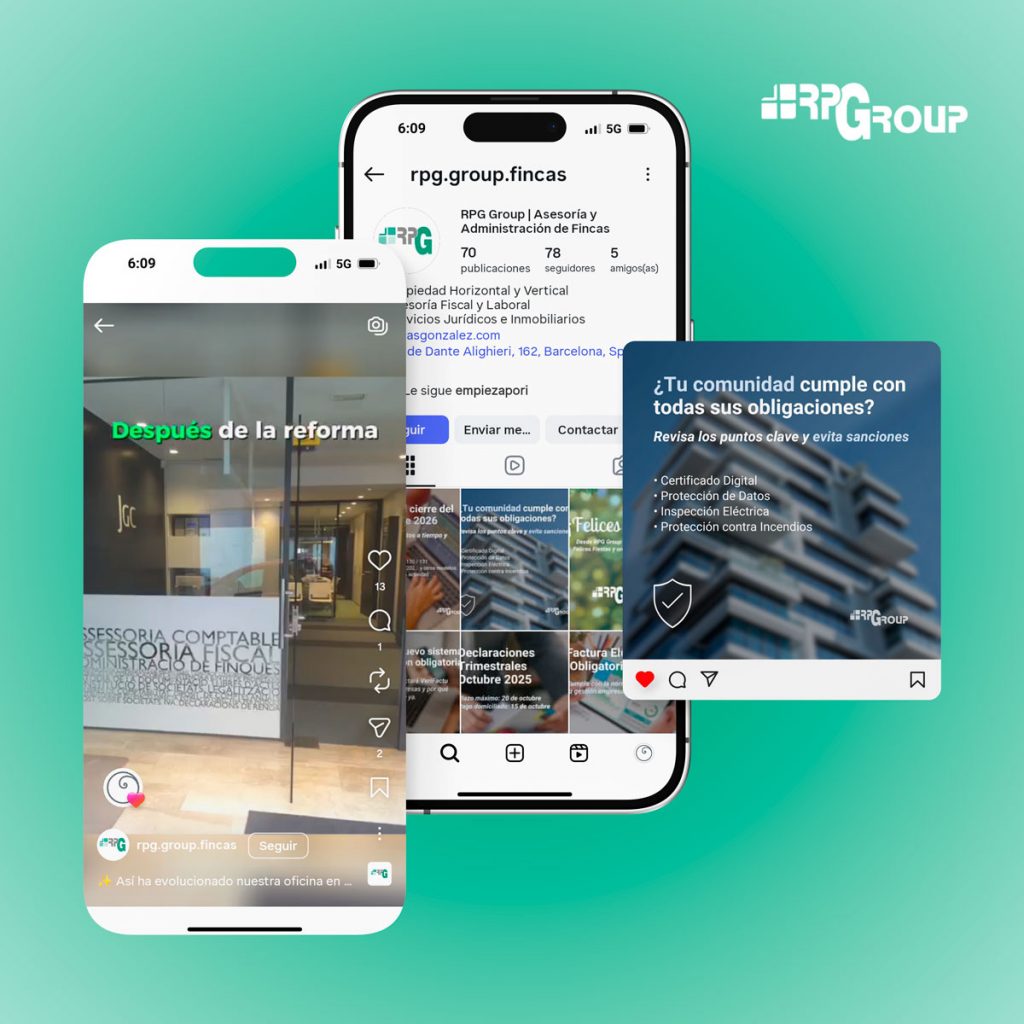 Como parte de nuestros servicios, nos encargamos de la gestión de las redes sociales de RPG Group en Instagram y LinkedIn, adaptando la comunicación a cada plataforma y tipo de audiencia.